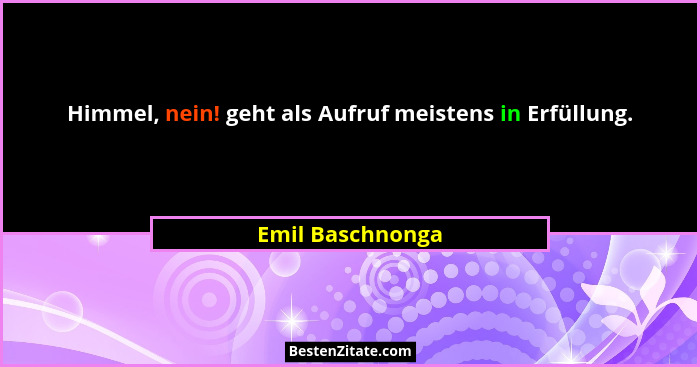 Himmel, nein! geht als Aufruf meistens in Erfüllung.