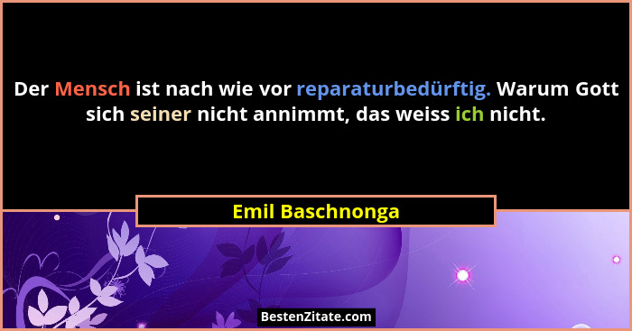 Der Mensch ist nach wie vor reparaturbedürftig. Warum Gott sich seiner nicht annimmt, das weiss ich nicht.