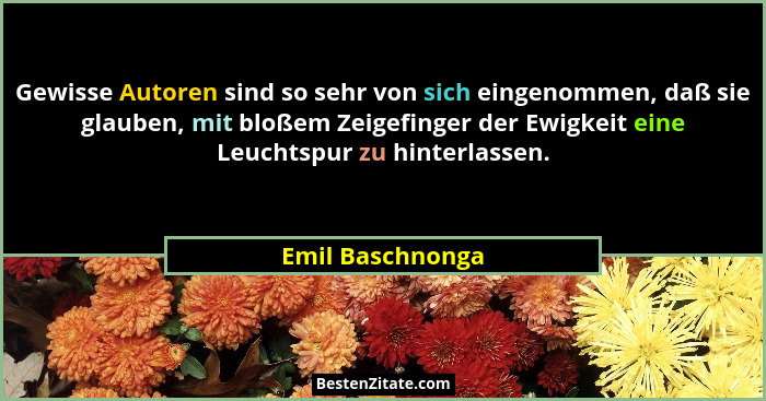 Gewisse Autoren sind so sehr von sich eingenommen, daß sie glauben, mit bloßem Zeigefinger der Ewigkeit eine Leuchtspur zu hinterlassen.