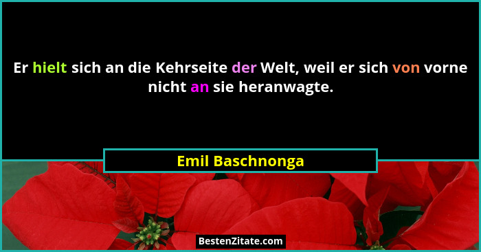 Er hielt sich an die Kehrseite der Welt, weil er sich von vorne nicht an sie heranwagte.