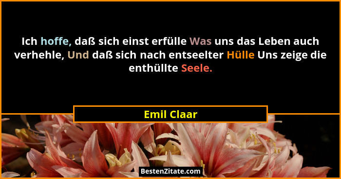 Ich hoffe, daß sich einst erfülle Was uns das Leben auch verhehle, Und daß sich nach entseelter Hülle Uns zeige die enthüllte Seele.