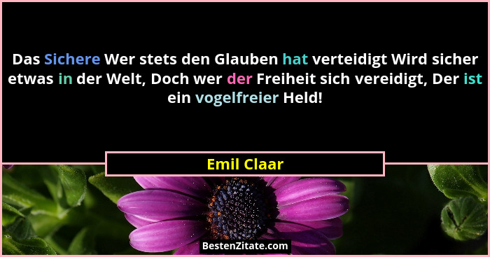 Das Sichere Wer stets den Glauben hat verteidigt Wird sicher etwas in der Welt, Doch wer der Freiheit sich vereidigt, Der ist ein vogelfreier Held!