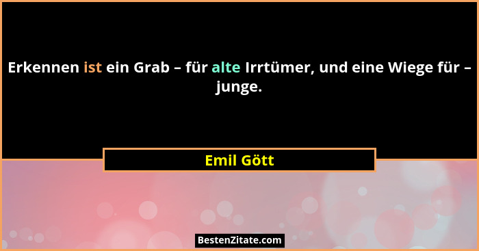 Erkennen ist ein Grab – für alte Irrtümer, und eine Wiege für – junge.