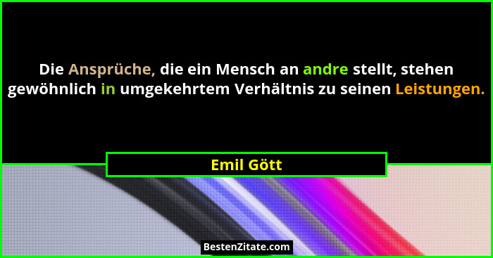 Die Ansprüche, die ein Mensch an andre stellt, stehen gewöhnlich in umgekehrtem Verhältnis zu seinen Leistungen.