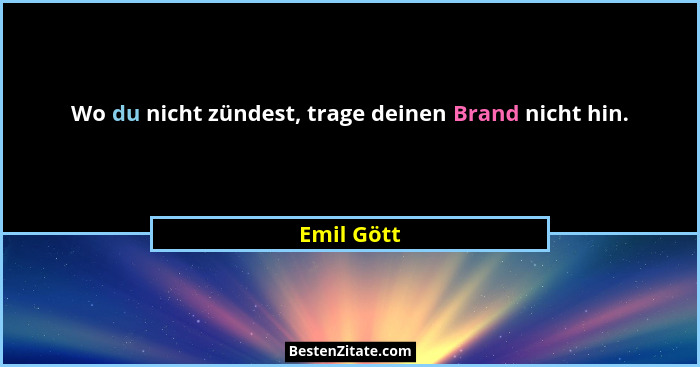 Wo du nicht zündest, trage deinen Brand nicht hin.