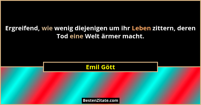 Ergreifend, wie wenig diejenigen um ihr Leben zittern, deren Tod eine Welt ärmer macht.