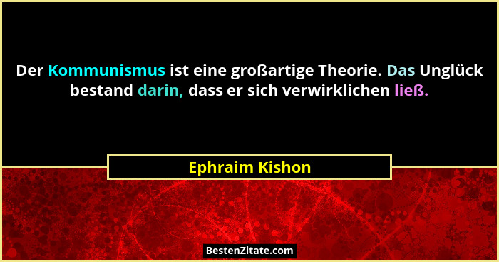 Der Kommunismus ist eine großartige Theorie. Das Unglück bestand darin, dass er sich verwirklichen ließ.