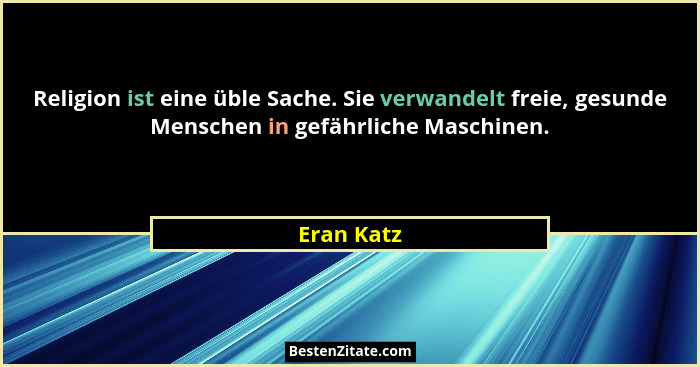 Religion ist eine üble Sache. Sie verwandelt freie, gesunde Menschen in gefährliche Maschinen.