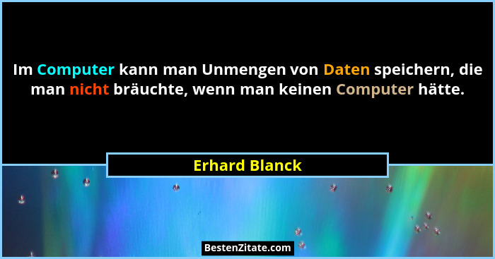 Im Computer kann man Unmengen von Daten speichern, die man nicht bräuchte, wenn man keinen Computer hätte.