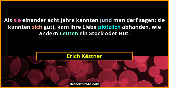 Als sie einander acht Jahre kannten (und man darf sagen: sie kannten sich gut), kam ihre Liebe plötzlich abhanden, wie andern Leuten ein Stock oder Hut.
