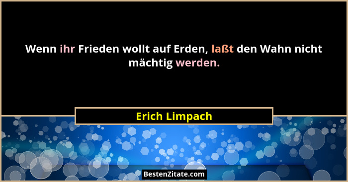 Wenn ihr Frieden wollt auf Erden, laßt den Wahn nicht mächtig werden.