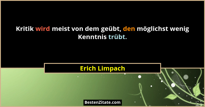 Kritik wird meist von dem geübt, den möglichst wenig Kenntnis trübt.