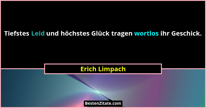 Tiefstes Leid und höchstes Glück tragen wortlos ihr Geschick.