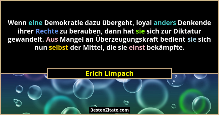 Wenn eine Demokratie dazu übergeht, loyal anders Denkende ihrer Rechte zu berauben, dann hat sie sich zur Diktatur gewandelt. Aus Mangel an Überzeugungskraft bedient sie sich nun selbst der Mittel, die sie einst bekämpfte.