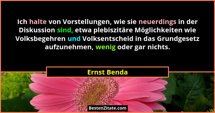 Ich halte von Vorstellungen, wie sie neuerdings in der Diskussion sind, etwa plebiszitäre Möglichkeiten wie Volksbegehren und Volksentscheid in das Grundgesetz aufzunehmen, wenig oder gar nichts.