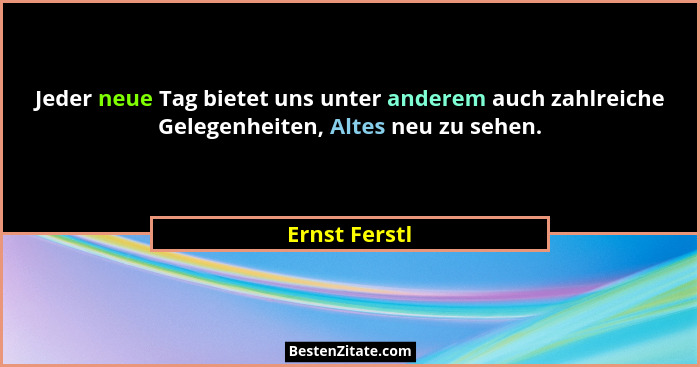Jeder neue Tag bietet uns unter anderem auch zahlreiche Gelegenheiten, Altes neu zu sehen.