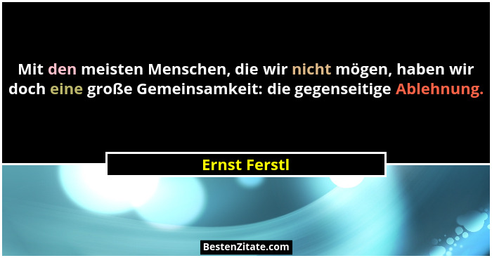 Mit den meisten Menschen, die wir nicht mögen, haben wir doch eine große Gemeinsamkeit: die gegenseitige Ablehnung.