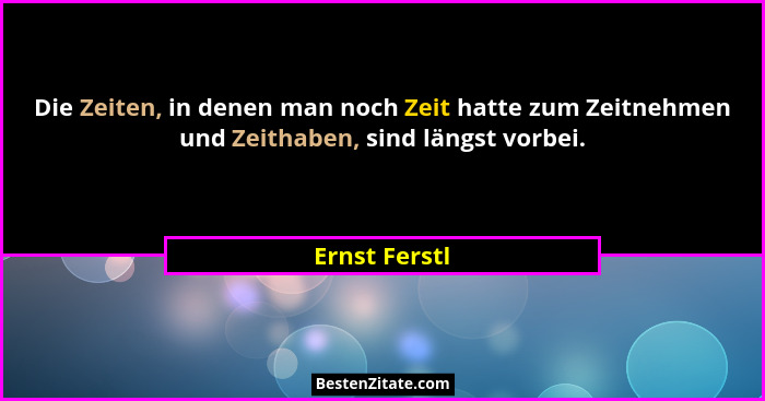 Die Zeiten, in denen man noch Zeit hatte zum Zeitnehmen und Zeithaben, sind längst vorbei.