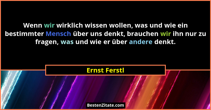 Wenn wir wirklich wissen wollen, was und wie ein bestimmter Mensch über uns denkt, brauchen wir ihn nur zu fragen, was und wie er über andere denkt.