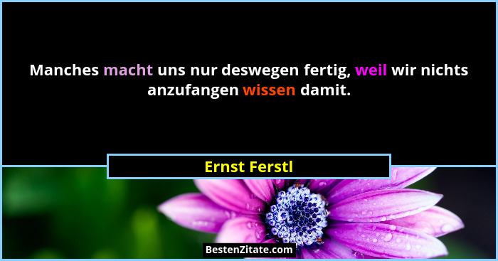 Manches macht uns nur deswegen fertig, weil wir nichts anzufangen wissen damit.