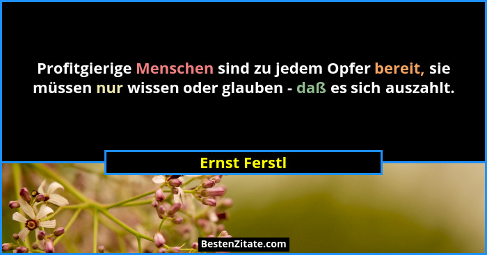 Profitgierige Menschen sind zu jedem Opfer bereit, sie müssen nur wissen oder glauben - daß es sich auszahlt.