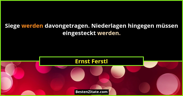 Siege werden davongetragen. Niederlagen hingegen müssen eingesteckt werden.