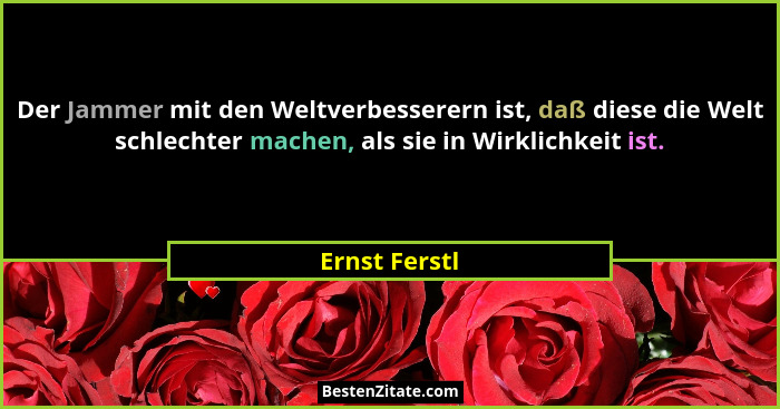 Der Jammer mit den Weltverbesserern ist, daß diese die Welt schlechter machen, als sie in Wirklichkeit ist.