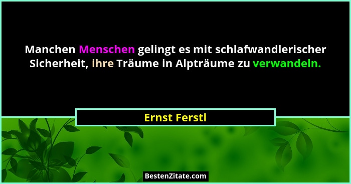 Manchen Menschen gelingt es mit schlafwandlerischer Sicherheit, ihre Träume in Alpträume zu verwandeln.