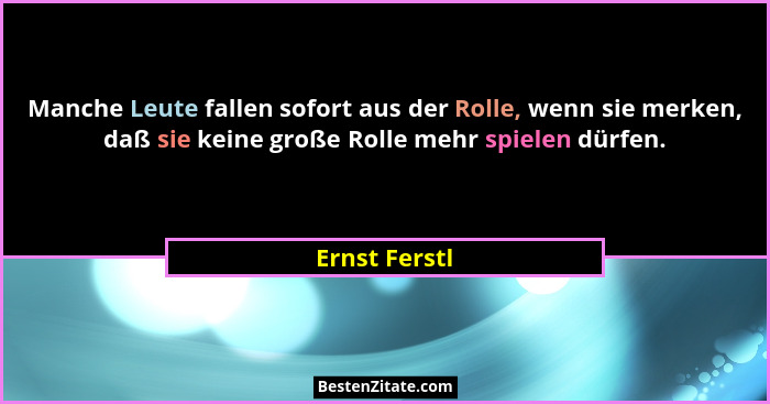 Manche Leute fallen sofort aus der Rolle, wenn sie merken, daß sie keine große Rolle mehr spielen dürfen.