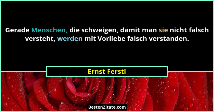 Gerade Menschen, die schweigen, damit man sie nicht falsch versteht, werden mit Vorliebe falsch verstanden.