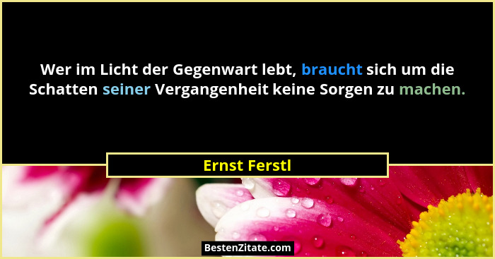 Wer im Licht der Gegenwart lebt, braucht sich um die Schatten seiner Vergangenheit keine Sorgen zu machen.