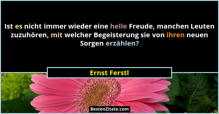Ist es nicht immer wieder eine helle Freude, manchen Leuten zuzuhören, mit welcher Begeisterung sie von ihren neuen Sorgen erzählen?