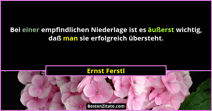 Bei einer empfindlichen Niederlage ist es äußerst wichtig, daß man sie erfolgreich übersteht.