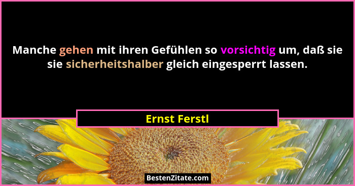 Manche gehen mit ihren Gefühlen so vorsichtig um, daß sie sie sicherheitshalber gleich eingesperrt lassen.