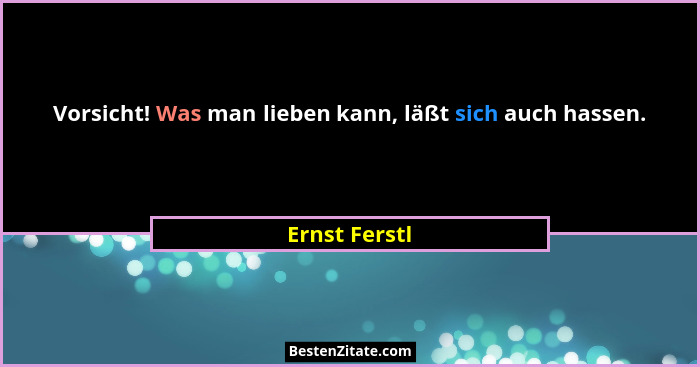 Vorsicht! Was man lieben kann, läßt sich auch hassen.