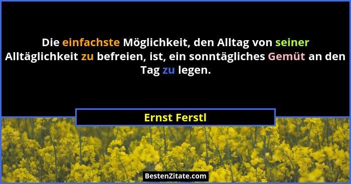 Die einfachste Möglichkeit, den Alltag von seiner Alltäglichkeit zu befreien, ist, ein sonntägliches Gemüt an den Tag zu legen.