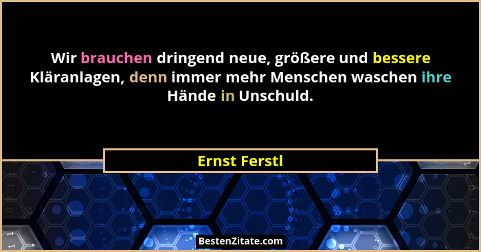 Wir brauchen dringend neue, größere und bessere Kläranlagen, denn immer mehr Menschen waschen ihre Hände in Unschuld.