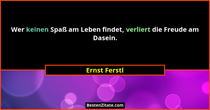 Wer keinen Spaß am Leben findet, verliert die Freude am Dasein.