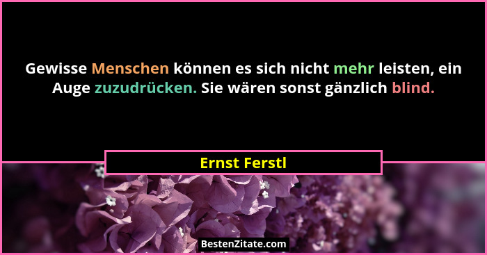 Gewisse Menschen können es sich nicht mehr leisten, ein Auge zuzudrücken. Sie wären sonst gänzlich blind.