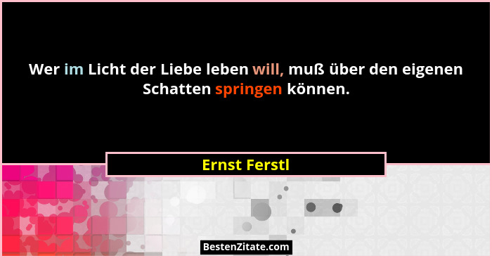 Wer im Licht der Liebe leben will, muß über den eigenen Schatten springen können.