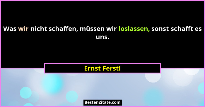 Was wir nicht schaffen, müssen wir loslassen, sonst schafft es uns.