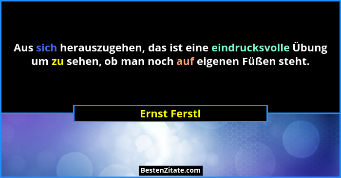 Aus sich herauszugehen, das ist eine eindrucksvolle Übung um zu sehen, ob man noch auf eigenen Füßen steht.