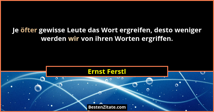 Je öfter gewisse Leute das Wort ergreifen, desto weniger werden wir von ihren Worten ergriffen.