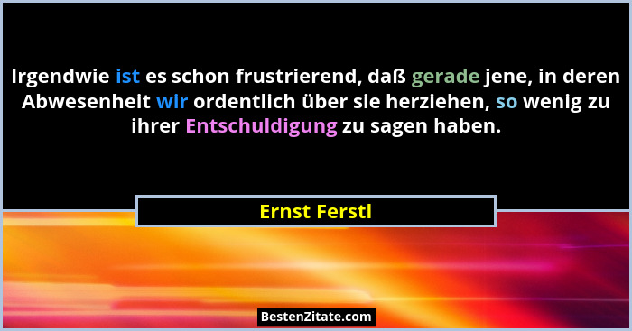 Irgendwie ist es schon frustrierend, daß gerade jene, in deren Abwesenheit wir ordentlich über sie herziehen, so wenig zu ihrer Entschuldigung zu sagen haben.