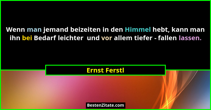 Wenn man jemand beizeiten in den Himmel hebt, kann man ihn bei Bedarf leichter und vor allem tiefer - fallen lassen.