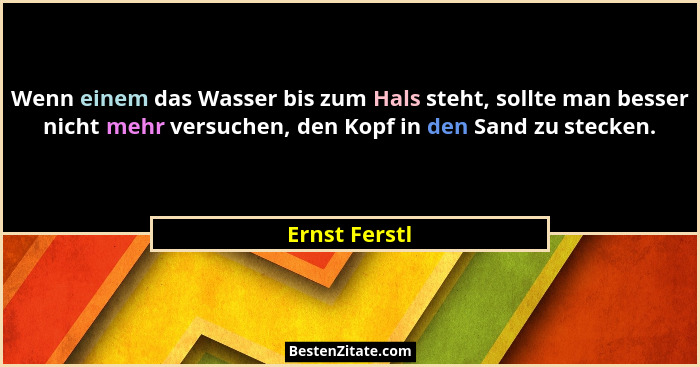 Wenn einem das Wasser bis zum Hals steht, sollte man besser nicht mehr versuchen, den Kopf in den Sand zu stecken.