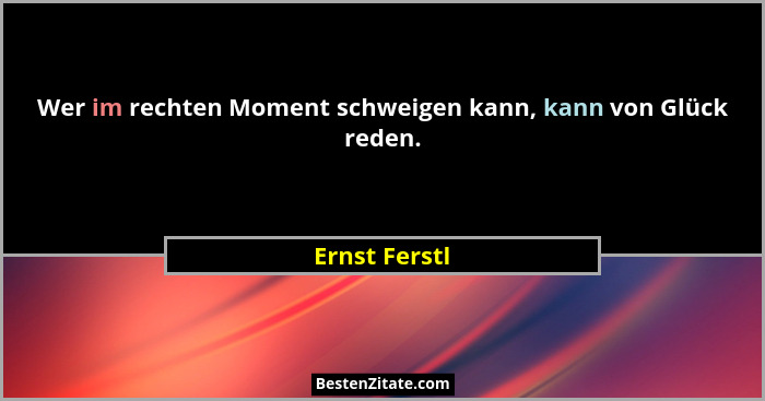 Wer im rechten Moment schweigen kann, kann von Glück reden.