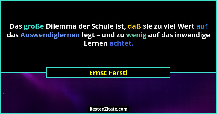 Das große Dilemma der Schule ist, daß sie zu viel Wert auf das Auswendiglernen legt – und zu wenig auf das inwendige Lernen achtet.