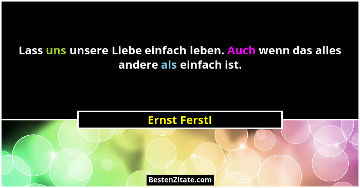 Lass uns unsere Liebe einfach leben. Auch wenn das alles andere als einfach ist.