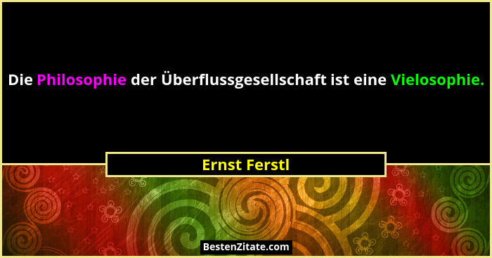 Die Philosophie der Überflussgesellschaft ist eine Vielosophie.